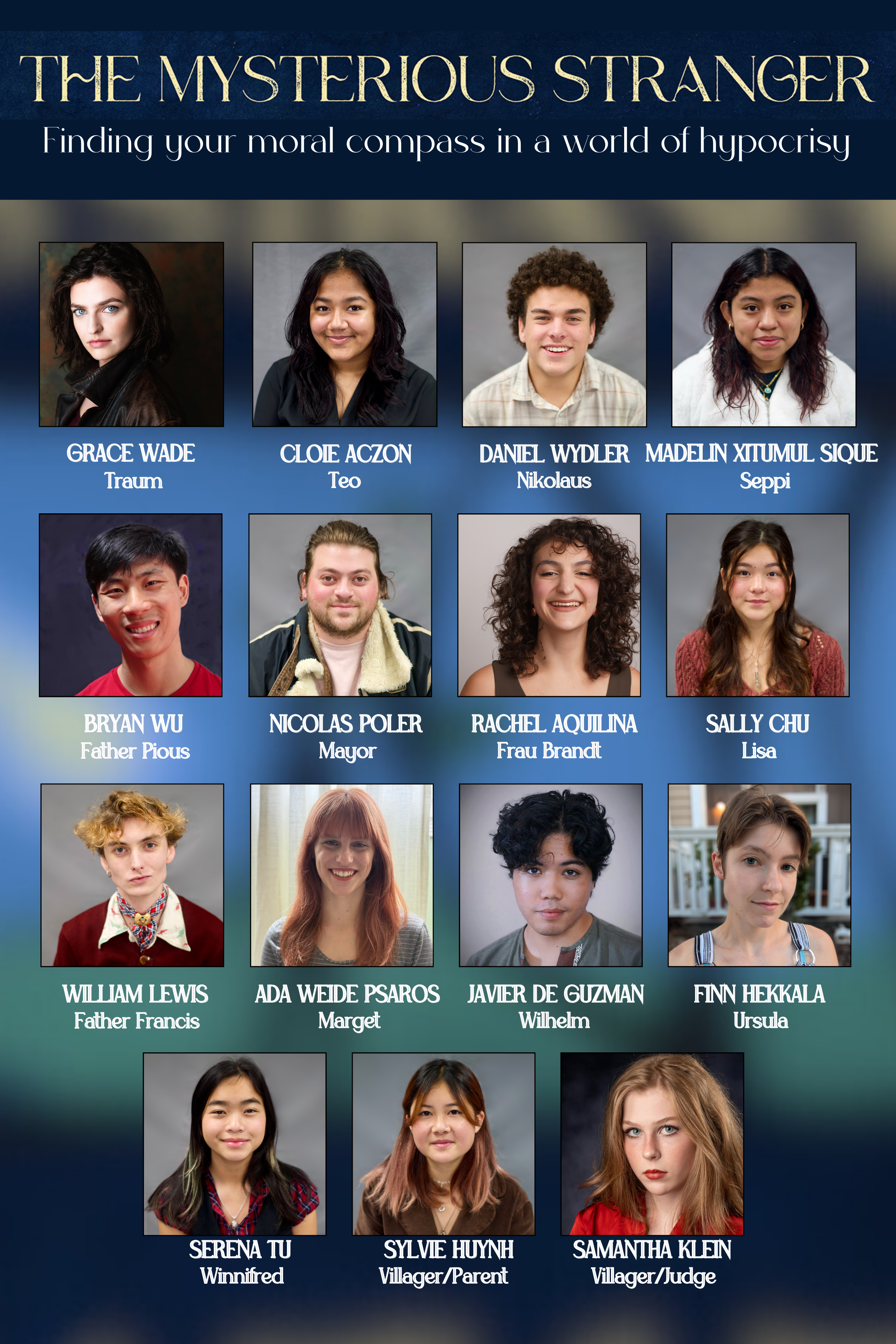 San Francisco Youth Theatre (SFYT) proudly presents the world premiere of Mark Twain’s The Mysterious Stranger. Set in 1590s Austria, the story follows three teenagers encountering a Stranger from the future who shines a light on the moral hypocrisy of the village's gossip, greed, and witch hunts. Using magic, illusion, and Twain’s trademark humor, the Stranger challenges the teens (and our audiences) to find their own moral compass in a world rife with hypocrisy.